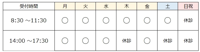 (診療時間と受付時間が異なる場合もあります。 お問い合わせください。 )